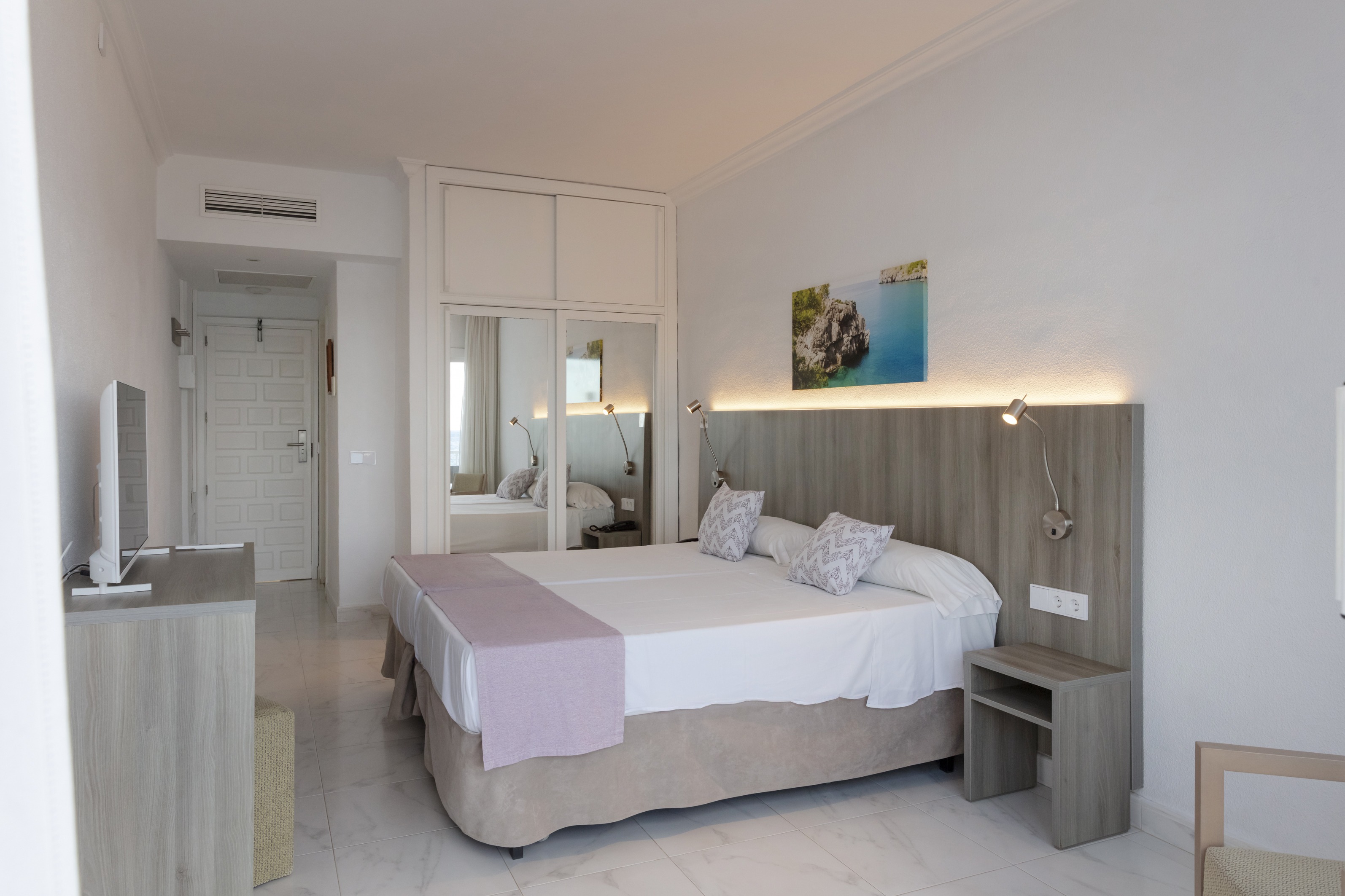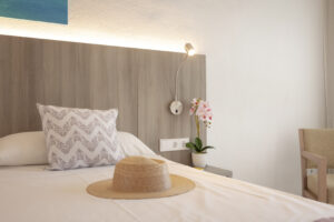 El hotel ofrece 55 habitaciones cómodas y bien equipadas, todas ellas con balcón o terraza y vistas al mar o al entorno costero. Todas incluyen aire acondicionado, wifi gratuito, televisión vía satélite, nevera, caja fuerte y baño privado con artículos de aseo y secador. La cuidada distribución y la luz natural hacen de cada habitación un espacio acogedor y confortable.